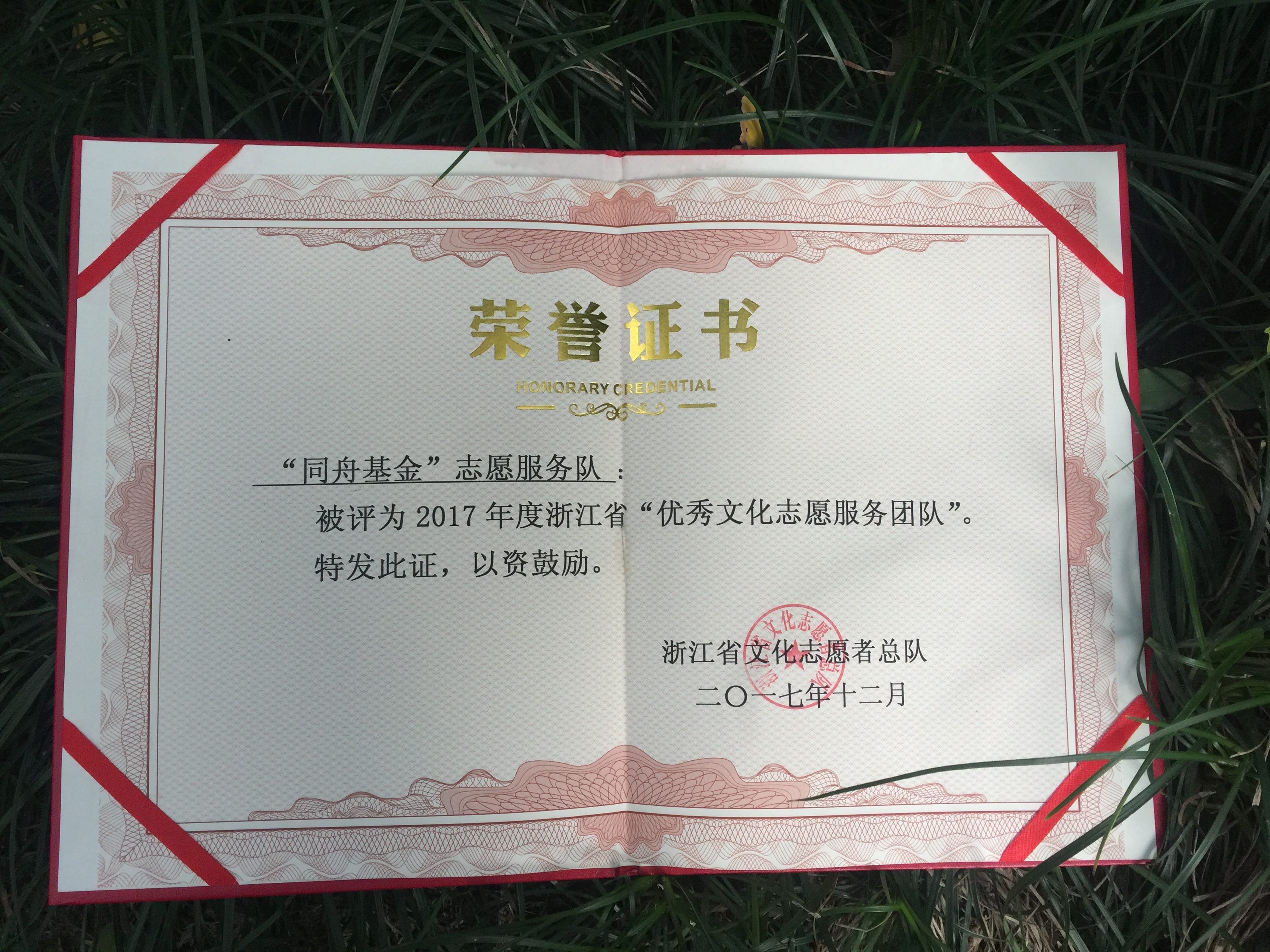 通过长期积累和不懈努力,本月,船舶工程学院“同舟基金”志愿服务队被浙江省文化志愿者总队授予2017年度浙江省“优秀文化志愿服务队”荣誉称号。