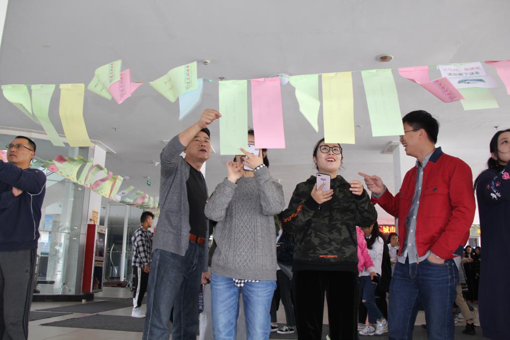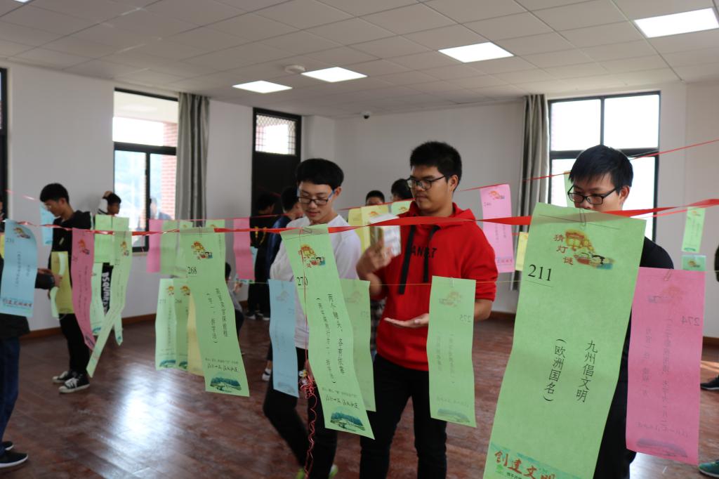 在图书馆一楼、商贸区、岱山校区三处党建·廉政·创城知识谜语竞猜活动现场,活动融知识性与趣味性于一体,以有奖竞猜方式吸引广大师生踊跃参与,现场反应热烈。本次活动悬挂了五百余条谜语,都与党建、党风廉政建设、创建全国文明城市内容有关,使党建文化、廉政文化、校园文化在轻松活泼的活动氛围中深入师生心中。