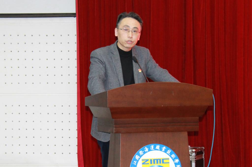 张新杰副校长号召全校同学向先进学习,并提出了珍惜青春时光、坚定理想信念、树立发展信心、坚持勤实学风、共创优美环境的要求。(文/於国元 图/赵怡琦)