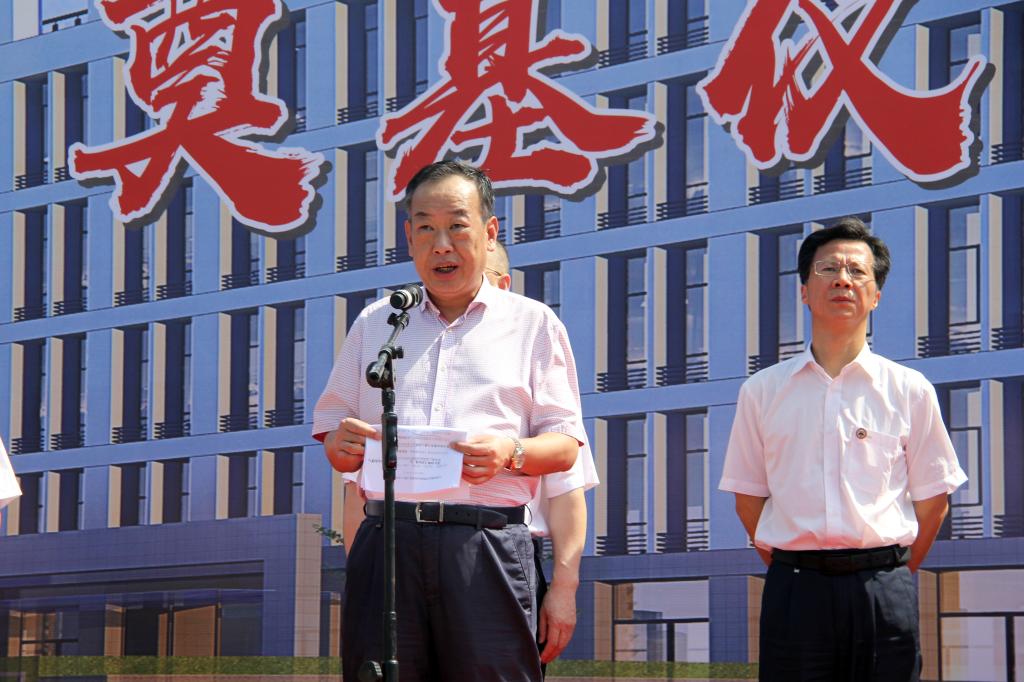 7月17日上午,我校社会服务与创业教育大楼工程开工奠基仪式在即将落成的体育馆北面工地举行。校党委书记陈松华、校长吴中平,校领导张新杰、孔志光、李丽、刘相、江爱芬、孔志华,舟山市公共项目建设中心主任陈岳龙,以及学校干部师生代表、施工单位代表等近百人参加。仪式由李丽副校长主持。
