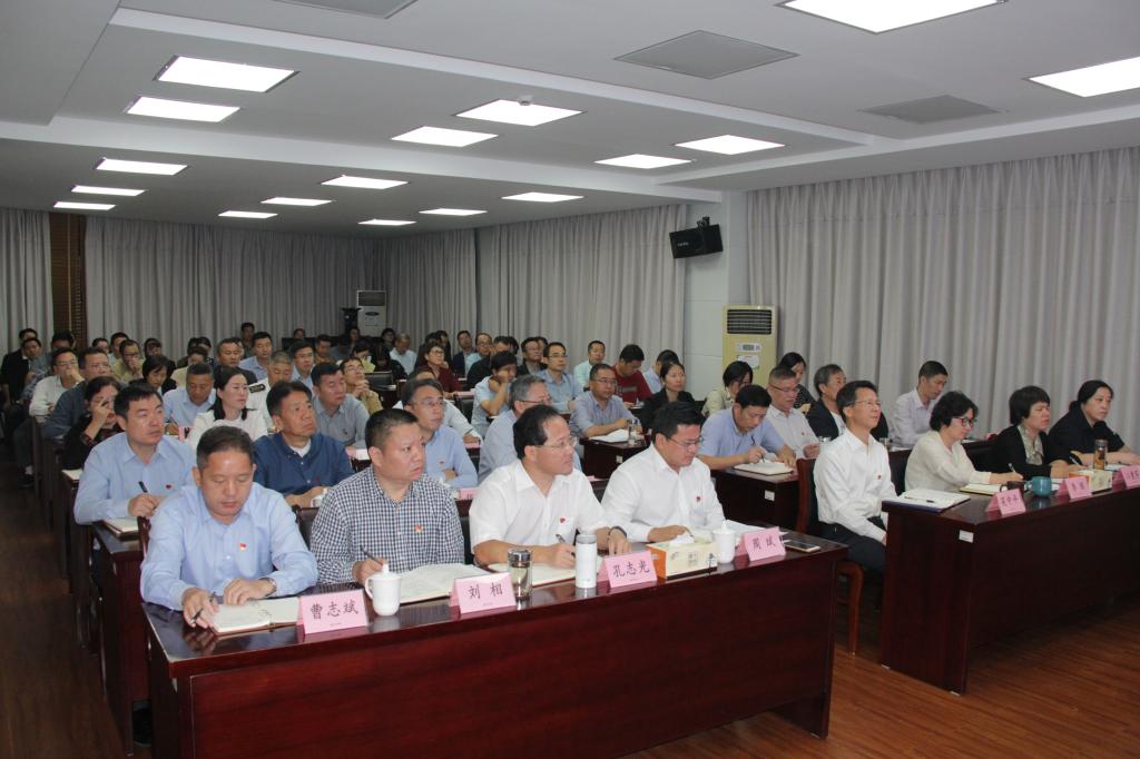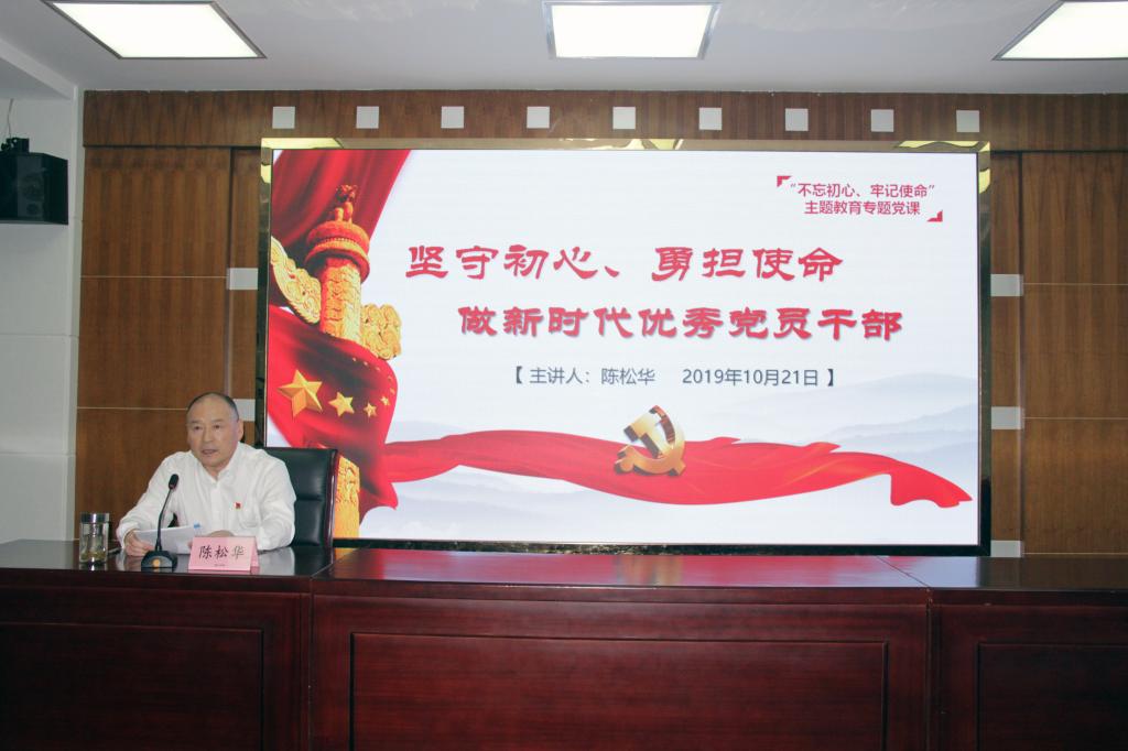 为深入学习宣传贯彻习近平新时代中国特色社会主义思想,扎实推进“不忘初心、牢记使命”主题教育,10月21日晚上,校党委书记陈松华在行政楼401会议室以“坚守初心、勇担使命,做新时代优秀党员干部”为题讲授主题教育专题党课。省委第九巡回指导组周斌同志莅临指导,校党政班子成员、全体中层干部、部管干部代表以及主题教育领导小组办公室成员80余人聆听了党课。