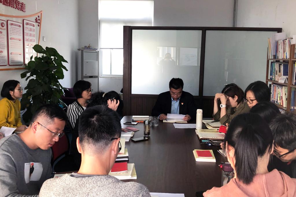社科体艺部党总支书记张海波以《学习习近平新时代中国特色社会主义思想》为题,从习近平新时代中国特色社会主义思想的形成背景、主要内容和指导具体工作的方向展开,向全体党员展示和剖析了中华人民共和国发展70年的奋进史。