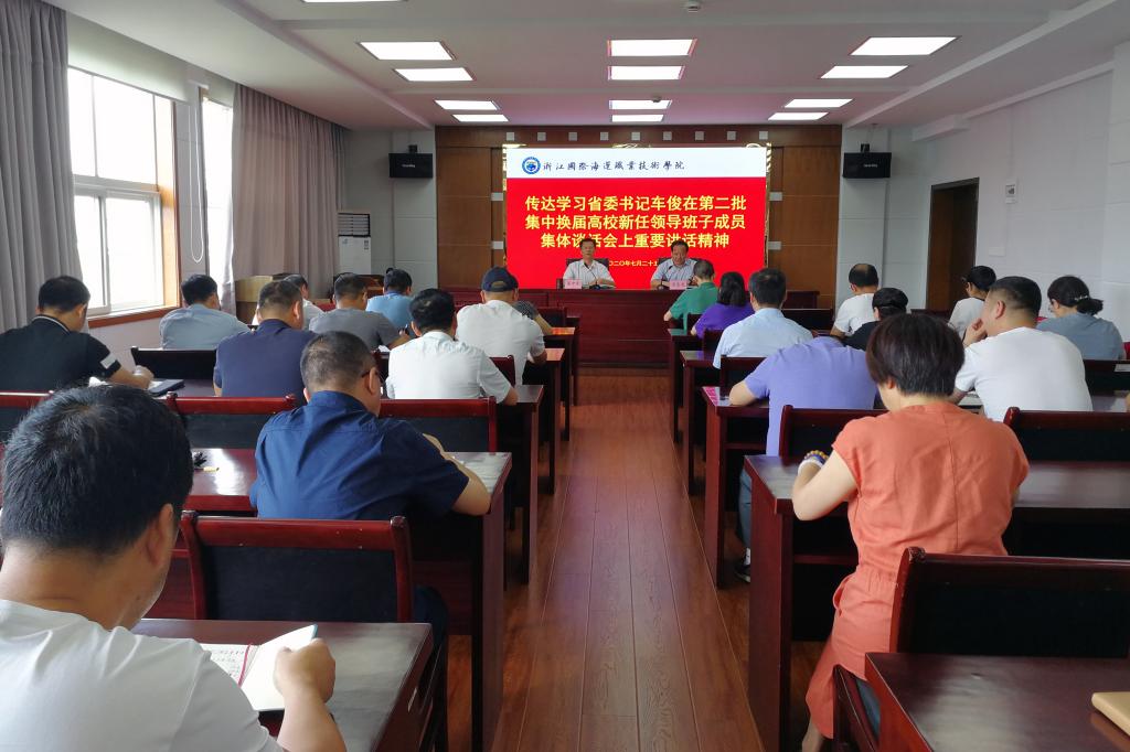 7月23日下午,浙江省委书记车俊在第二批集中换届高校新任领导班子集体谈话会上作重要讲话,我校迅速组织传达学习贯彻讲话精神。