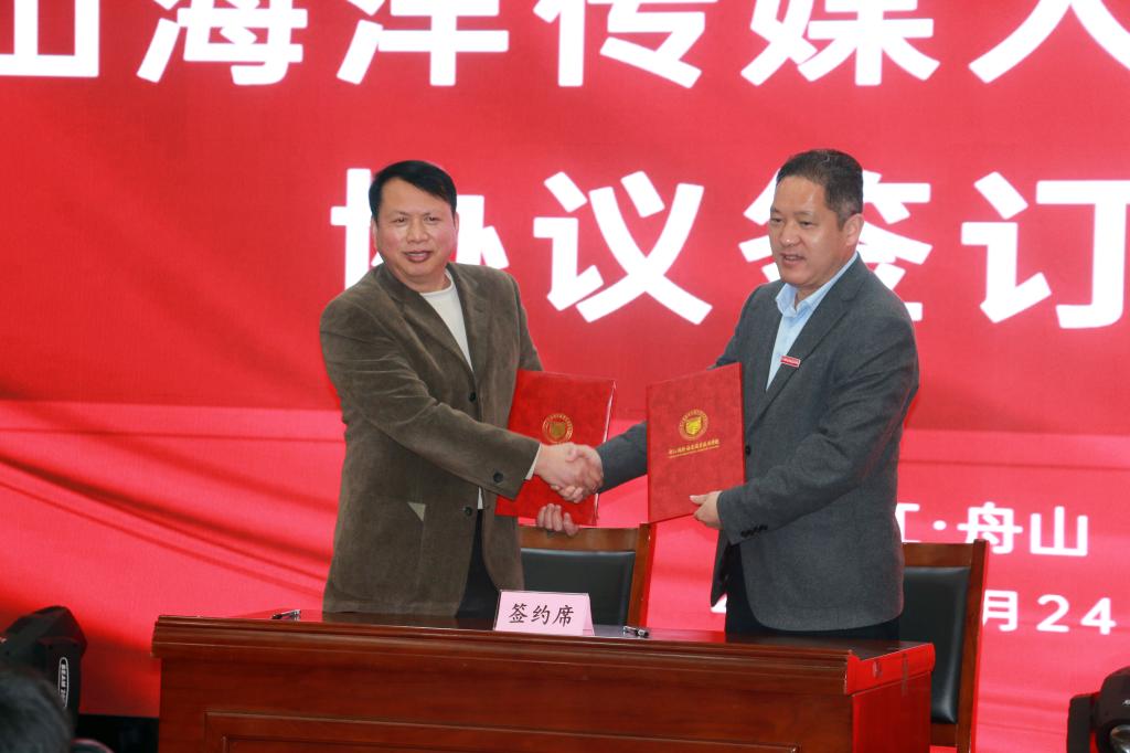 启动仪式上,学校和市影视家协会签订了“舟山海洋传媒人才培养基地”共建协议,共同为基地揭牌,并颁发了客座教授聘书。据悉,该基地旨在建立“产教融合—校外实践—就业支持”的快捷培养通道,有助于推动教育链、人才链与产业链、创新链四链合一,共享资料、共育人才。今后,双方将协力助推舟山海洋数字传媒产业的发展,为新区数字经济和智慧海洋建设出一份力。