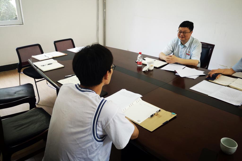 调研会后,苏为泽书记与联系的船舶工程学院学生支部的胡军伟同学亲切交谈,了解了他的学习、生活情况以及存在困难,并对学生提出了鼓励和期望。