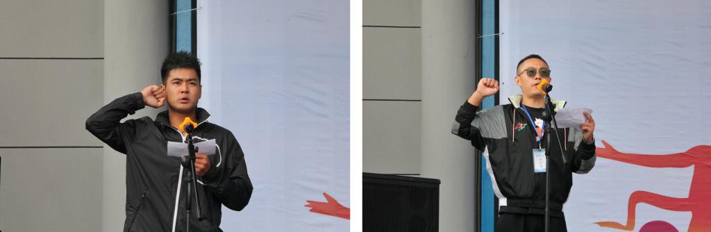 运动员代表厉侃哲同学和裁判员代表李成广老师分别宣誓,承诺将严格遵守赛事活动的安排并以积极饱满的态度参加本届运动会,确保运动会的公平公正。
