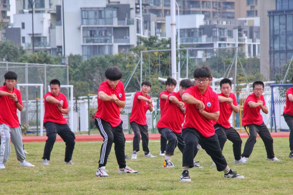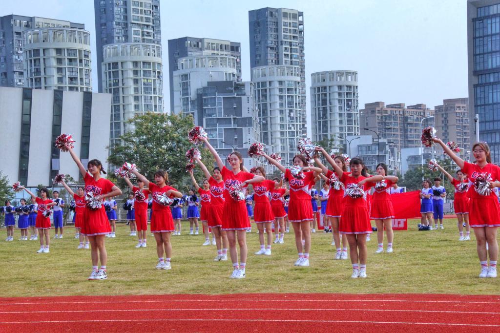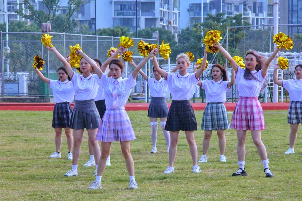 在青春动感的开幕式表演环节,领导来宾和全体师生观摩了旗语、军体拳、舞蹈、啦啦操等集体表演。各二级学院选送的精彩演出,充分展示了海运学子积极向上的精神风貌,赢得了观众阵阵欢呼,现场气氛热烈。