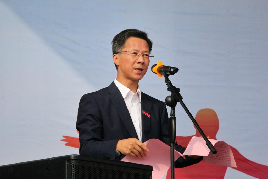 庄严的升国旗仪式后,校长吴中平致开幕辞。他对参加开幕式的领导嘉宾表示热烈欢迎,向精心筹备本届运动会的工作人员表示衷心感谢。他说,一年一度的运动会是学校体育教育的重要组成部分,也是体育工作的一次大检阅,更是广大师生精神面貌和综合素质的一次集中展示。今年运动会也是首次学校师生同场竞技,希望全体师生在运动会中领略体育魅力,享受运动快乐,并能以本次运动会为契机,牢固树立终身锻炼的理念,强健体魄,磨炼意志,在全校范围内营造崇尚健康、热爱运动的浓厚氛围,处处呈现“责任在肩、奋斗有我”的拼搏场景,把“团结协作、顽强拼搏、永不放弃”的体育精神融入学习和各项工作,并使其成为促进我们不断成长、推动事业持续发展的精神动力。