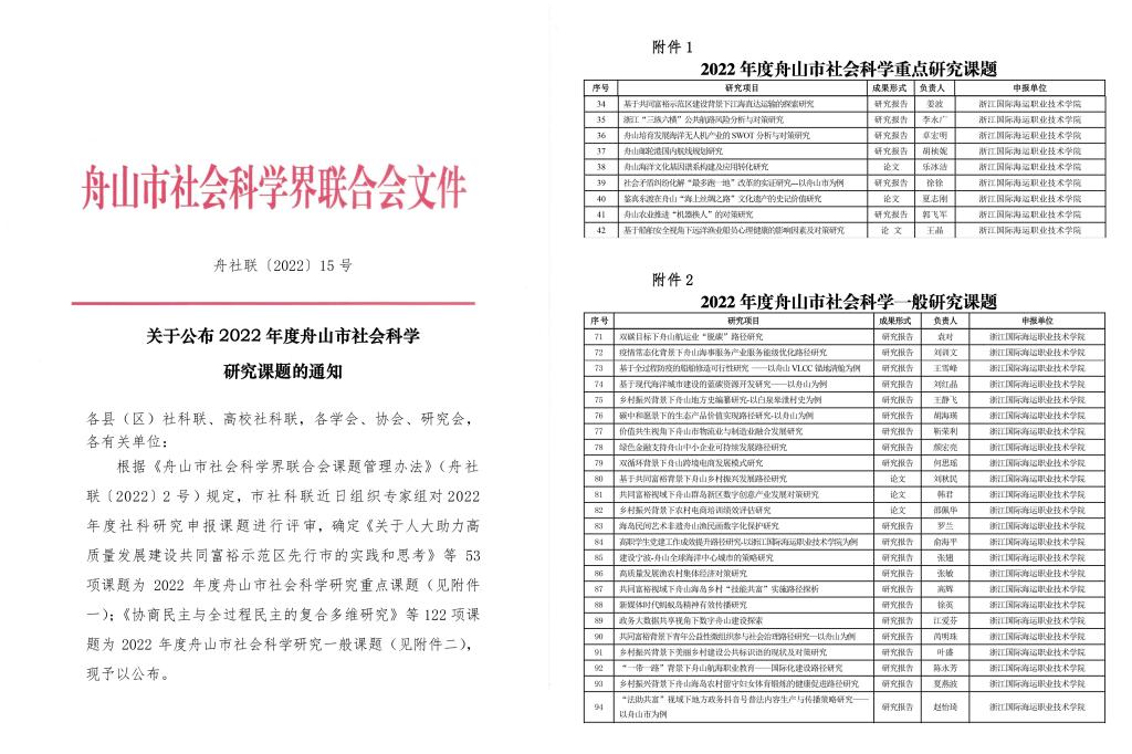 我校教师申报舟山市社科联研究课题立项数量创历史新高