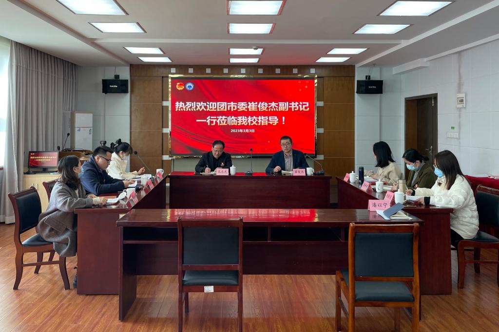 3月3日下午,团市委副书记崔俊杰、组宣部副部长应钰涵一行来我校调研指导共青团工作。校党委副书记孔志光,校团委副书记余娜娜,各二级学院分团委书记共同参加调研交流。