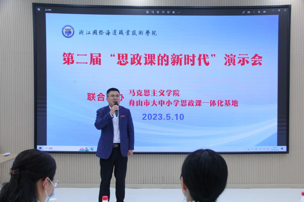 为了深入贯彻习近平总书记关于办好思政课的系列讲话精神,5月10日下午,我校马克思主义学院与舟山市大中小学思政课一体化基地联合主办第二届“思政课的新时代”演示会。浙江工商职业技术学院马克思主义学院党总支书记、副院长靖国华副教授,我校教务处长郑燕华教授应邀现场指导。来自航海工程学院和海洋旅游学院的20位大学生代表观摩了本次演示会。