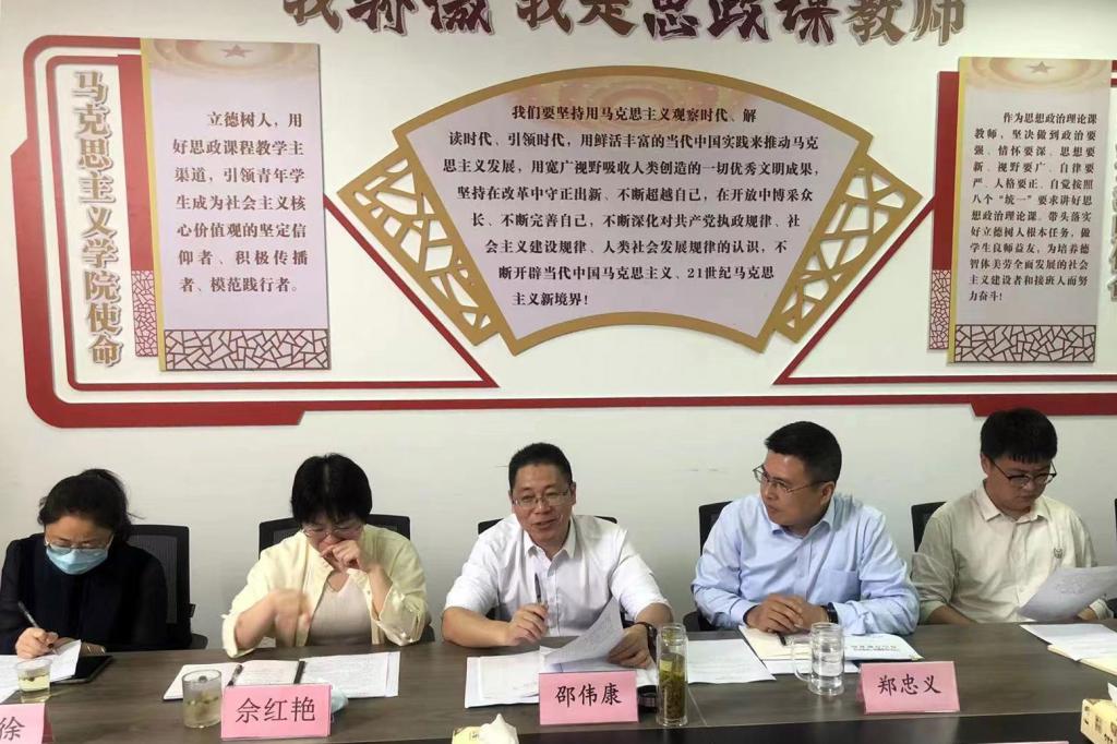 为深入学习贯彻习近平总书记关于“共同推动大中小学思政课一体化建设”的指示精神,落实全市大中小学思政课一体化推进会精神,5月16日下午,大中小学“如何上好思政课”研讨会在我校马克思主义学院会议室举行。市教育局总督学、市大中小学思政课一体化建设指导委员会副主任邵伟康出席会议,来自全市10所大中小学思政课负责人和思政教师代表参加会议,研讨会由市大中小学思政课一体化建设指导委员会副主任、学校马克思主义学院院长郑忠义主持。