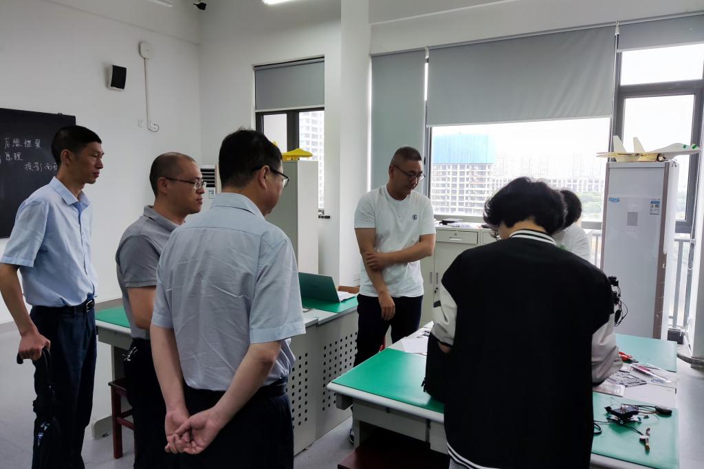 苏为泽书记仔细观察了新教师的教学方法和学生课程学习状况,提出了许多中肯的建议和意见,参观了无人机应用技术专业实训室,了解了2023年金砖国家职业技能大赛(金砖国家未来技能挑战赛)“无人机操作”赛项浙江省选拔赛承办筹备情况,看望了训练的学生。副院长何琪及无人机应用技术专业主任卓宏明汇报了近年来以海洋为特色的无人机产学研用协同创新人才培养、科研和社会服务各方面的建设情况。