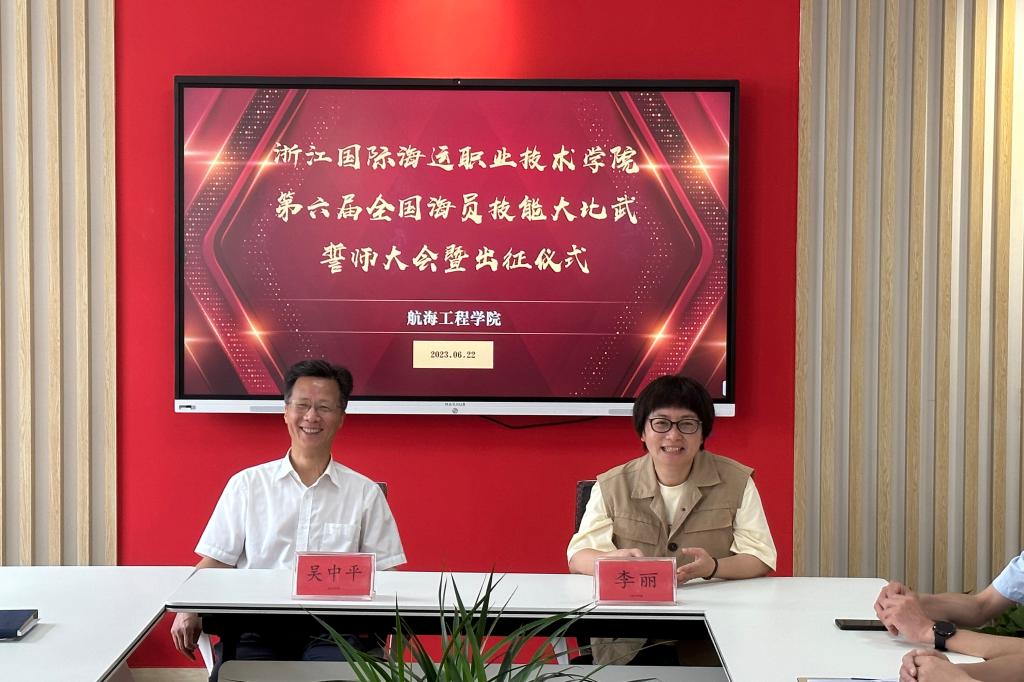 6月22日,在端午佳节之际,学校在海慧楼309会议室举行了第六届中国海员技能大比武出征誓师动员大会。校长吴中平、副校长李丽、办公室主任赵晖,航海工程学院院长汪益兵、党总支书记李刚以及参赛指导教师、队员参加大会。