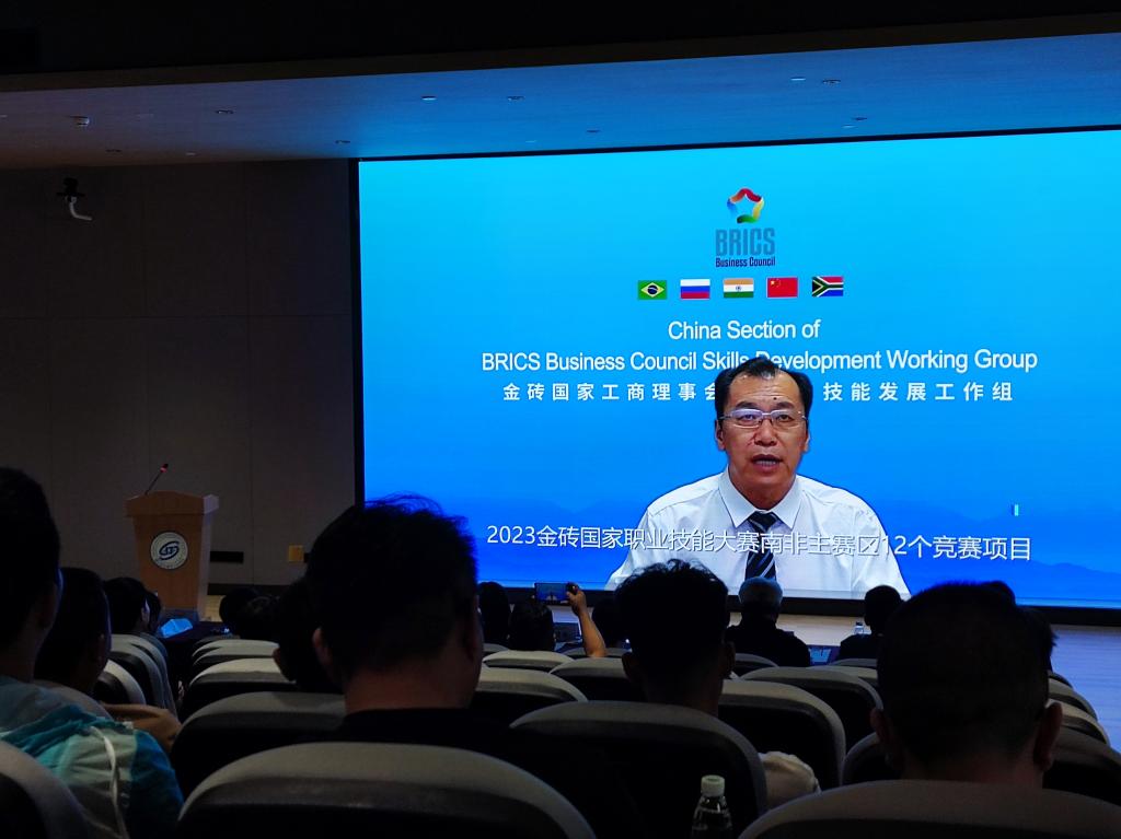 为落实金砖国家技能发展相关精神、贯彻执行习近平主席在金砖国家领导人第十三次会晤上关于“举办职业技能大赛,为五国职业院校和企业搭建交流合作平台”倡议,2022年,中国作为主席国在金砖国家合作机制下,由教育部、人社部、金砖国家工商理事会联合主办了第一届金砖国家职业技能大赛。2023金砖国家职业技能大赛(金砖国家未来技能挑战赛)南非高等教育与培训部、金砖国家工商理事会、南非豪登省政府联合主办。(海洋装备工程学院)