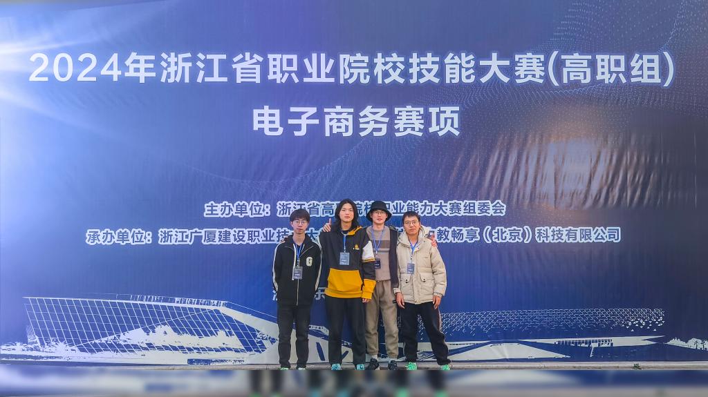3月23日,浙江省职业院校技能大赛暨全国职业院校技能大赛选拔赛电子商务竞赛在浙江广厦职业技术大学圆满结束。本次大赛由浙江省教育厅主办,中教畅享(北京)科技有限公司协办,吸引了来自全省39个院校的代表队参与竞技。经过激烈角逐,我校由现代港口贸易学院2023级跨境电商2班的张越杭、白四银、阮鸿泽以及2023级数媒2班的罗晨元组成的代表队荣获浙江省一等奖,并以全省第二名的佳绩成功晋级国赛。