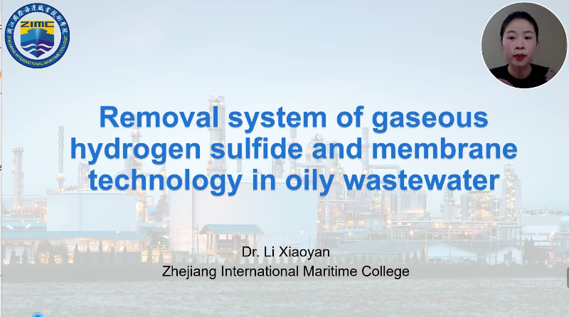 陈英教授指导下,李小燕作了题为《Removal system of gaseous hydrogen sulfide and membrane technology in oily wastewater》的报告,该报告以油气田开采过程中伴生的硫化物、水油混合物为研究对象,构建了由钛硅沸石和过氧化氢组成的鼓泡系统,实现了安全、低成本、环保高效去除气态硫化氢。同时,基于棉织物修饰二氧化硅和聚多巴胺,研制了一种超亲水性和水下超疏油的水油分离膜,具有良好的油水分离性能、抗油垢、低油附着力、机械稳定性,在解决工业废气和废水问题方面具有巨大的应用潜力。