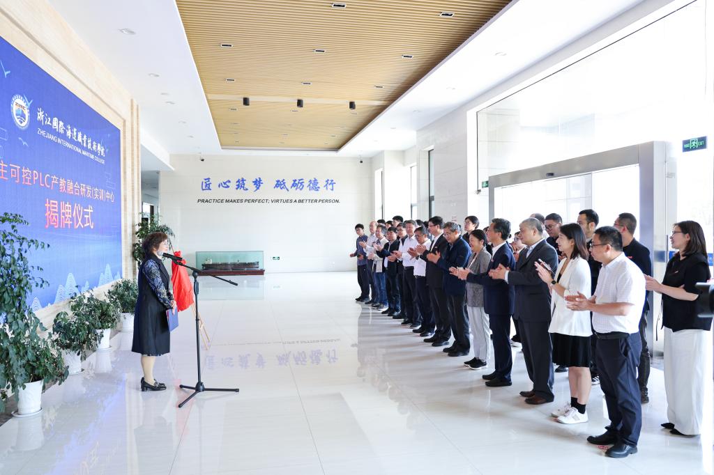 5月8日下午,学校自主可控PLC产教融合研发(实训)中心在综合实训楼正式揭牌,并举行了隆重的启用仪式。校党委书记苏为泽、校长吴中平,至控科技董事长张伟宁、总裁施一明出席了揭牌仪式和实训室启用仪式。仪式还特别邀请了原省经信厅副厅长吴君青、原杭州市科技局局长楼健人、杭州市经信局副局长杨晓勇、省经信厅云计算与大数据产业处二级调研员祝健、俄罗斯自然科学院外籍院士肖铎、浙大城市学院副教授刘泓、浙江机电职业技术学院自动化学院教授葛惠民等领导和嘉宾出席。仪式由副校长李丽主持。