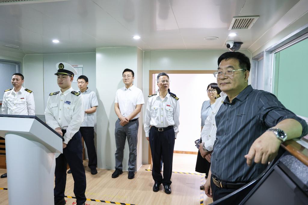 吴中平汇报学校省级高水平专业群建设情况。他从完成情况、建设成效、建设举措、特色经验与做法等5个方面全面地展示了学校航海技术专业群三年建设成果,并表示将以“双高”建设绩效评价特别是本次现场核查为契机,站在办学40周年、建校20周年的新起点上,充分用好国家战略富集舟山的机遇,不断强化内涵建设,提高专业能力和办学实力,为中国式现代化教育示范省建设贡献力量。
