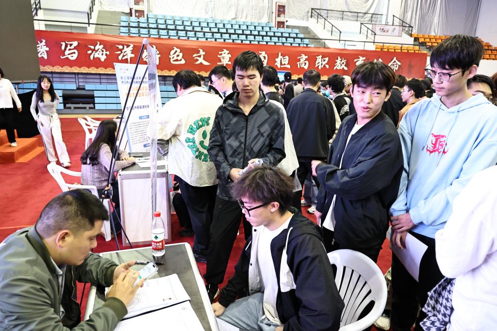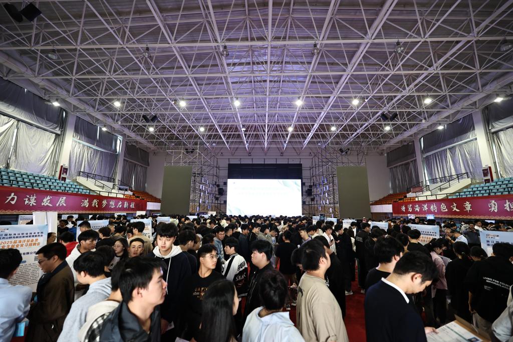 恳谈会后,由新城管委会和我校共同主办,海洋装备工程学院承办的2025届海洋装备类毕业生就业实习现场招聘会在体育馆举行。校长吴中平、副校长李丽、海洋装备工程学院领导与参会企业深入交流,了解企业需求,同时引导实习生们转变就业观念,树立“先就业后择业”的就业观,积极投递简历。招聘会上,各企业向实习生介绍了企业文化、招聘信息、晋升路线等就业关注问题,并向实习生发起了诚挚的邀请。实习生们在实习指导老师的指导下,手持精心准备的简历和自荐信,积极与招聘人员交流,主动了解用人单位的情况。现场气氛活跃,实习生们反响热烈。