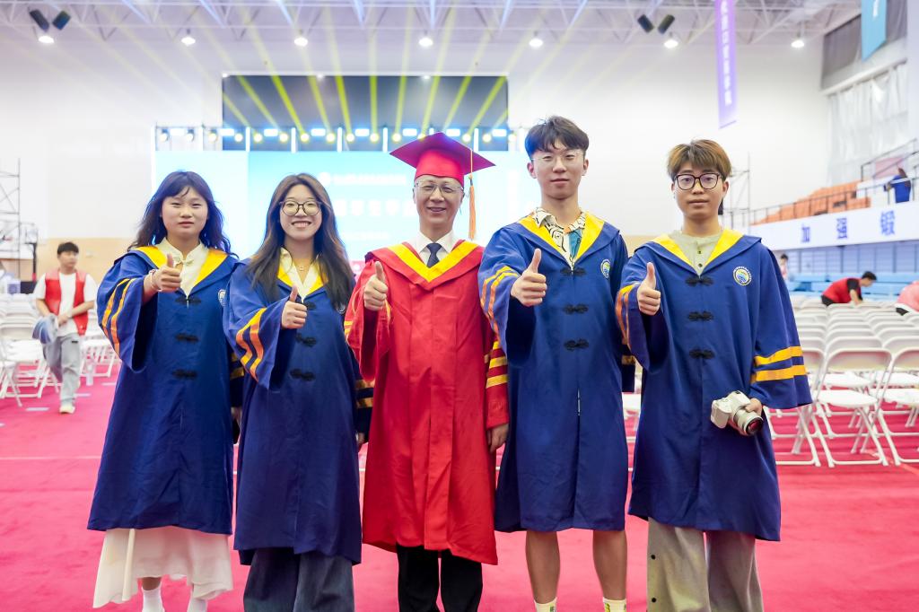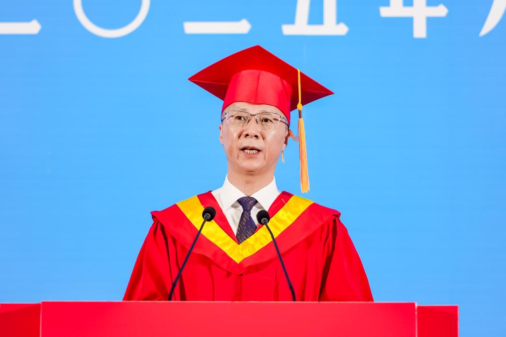 吴中平校长向毕业生致以美好的祝福,高度赞扬了同学们在校期间刻苦求学、勤工俭学、热心公益、服务企业的精神,肯定了他们在各类省级以上学科、技能、创新创业竞赛和体艺赛事中的拼搏印记。他对学校发展取得的成绩感到欣慰,更为同学们的成长与收获感到骄傲。以《德行四海向未来》为题,为毕业生讲授最后一课,勉励大家将德行四海的校训精神融入血脉,努力成为支撑家庭发展、推动社会进步、促进时代繁荣的栋梁之才和先锋力量。他向毕业生提出三点殷切期望:一要以终身学习充电宝,砥砺品格、提升才干;二要以感恩之心源动力,滋养情怀、回馈社会;三要以继往开来新赛道,勇担使命、定义未来。最后,他深情寄语毕业生们常回家看看。