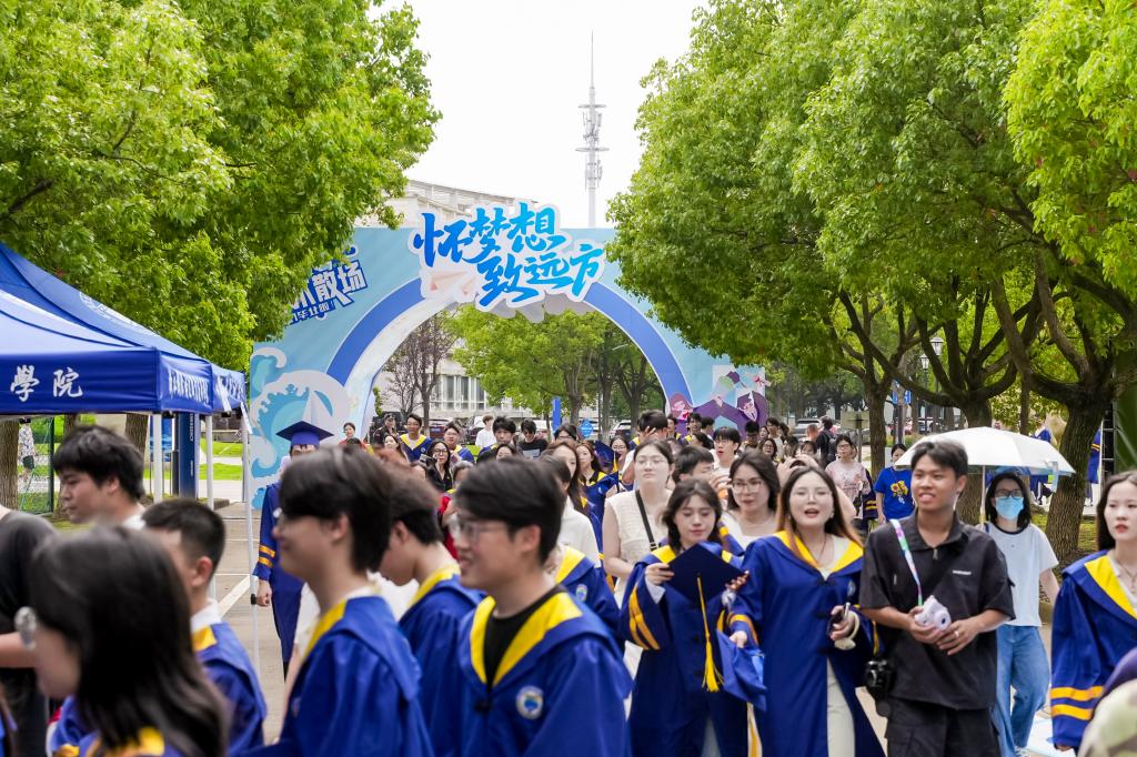 场馆外,学校精心打造的毕业小镇成为亮点,设有海运主题元素的背景墙和专业特色展示体验区,毕业生们纷纷在此合影,定格珍贵瞬间。