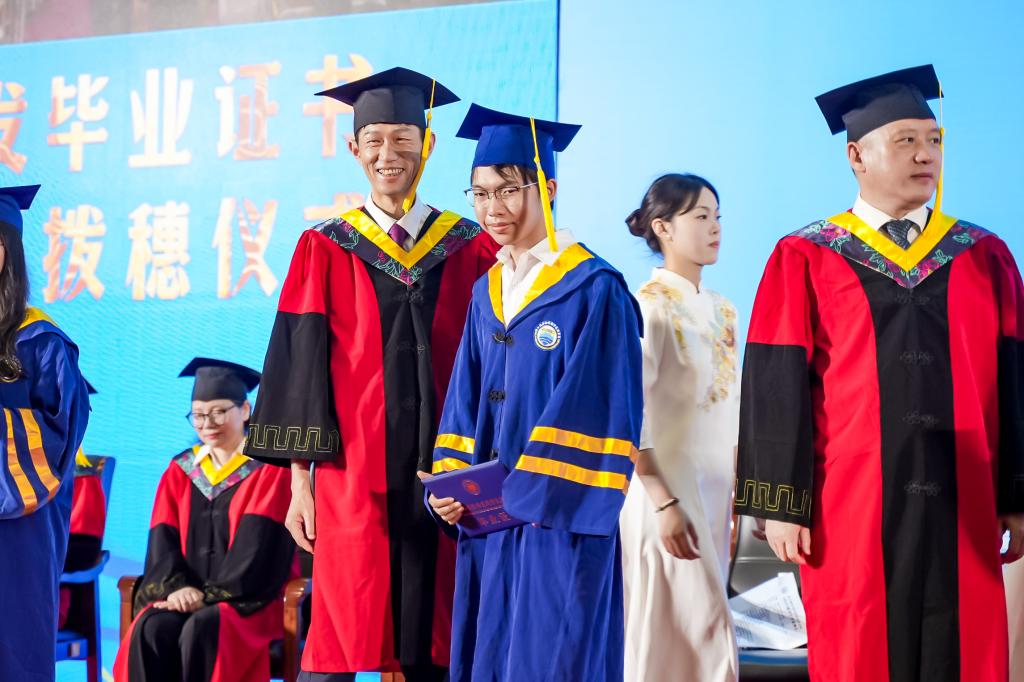校领导及各二级学院院长为毕业生代表逐一颁发毕业证书、拨穗正冠并合影留念。