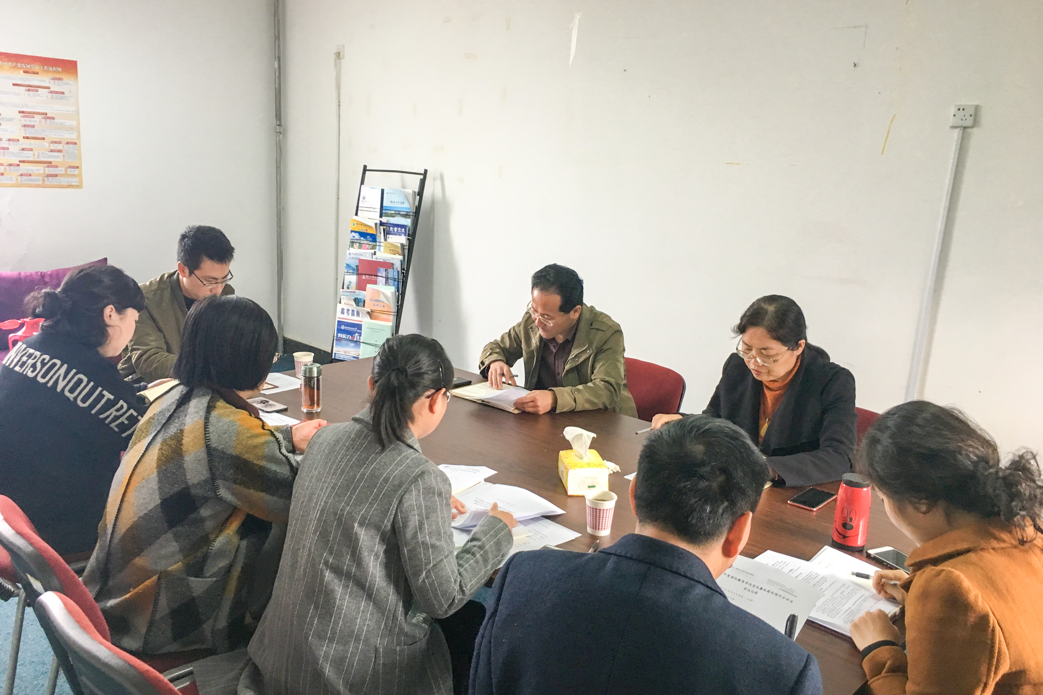 12月4日,国际教育学院在1501会议室召开2017年党风廉政建设情况分析会,联系学院的校领导(学校党委委员、副校长)孔志光,校纪委委员何散芬,国际教育学院全体党政班子成员参加会议。