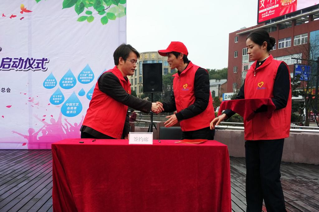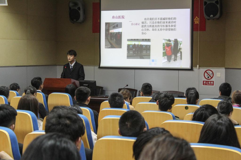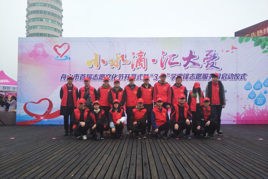 3月3日,由市文明办、团市委、市志愿者协会主办的“小水滴•汇大爱”舟山市首届志愿文化节开幕式暨“3.5”学雷锋志愿服务月启动仪式在定海文化广场举行。在表彰先进环节中,我校青年志愿者总队获评“2017年度舟山市优秀志愿服务集体”,国际教育学院的“薪火”综合执法志愿队服务项目获评“2017年度舟山市优秀志愿服务项目”,航海工程学院学生王可豪、港口管理学院学生杨金艳获得“2017年度舟山市优秀志愿者”荣誉。在志愿集市创投项目现场签约环节中,航海工程学院团委书记李军作为“青春治水”大学生“民间河长”志愿服务项目的负责人参与了签约。我校30名志愿者代表参加了启动仪式和广场服务活动,其中,海洋旅游学院选派了10名女生担任本次活动的礼仪小姐。