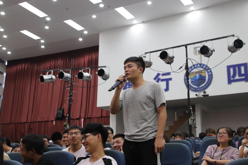 4位实习生代表从学生干部经历、专升本备考经历、实习工作和台湾交流生经历四个方面与在校生分享。程哲同学曾担任港口管理学院团委学生会主席,他就如何平衡学习和工作与大家进行了交流;翁士讯同学分享了“心态+方法+知识=成功”学习方法,他在今年的专升本考试中以198分的高分被宁波大学录取;第三位分享的林细丽同学在校期间曾代表学校参加浙江省物流专项比赛获得佳绩,目前在顺丰速运有限公司实习,她从学生到职场人士的角色转变给了学弟学妹提出了颇多建议;最后一位上台的周密同学,曾作为交换生到台北修平科技大学学习,她将台湾的学习、生活、游玩经历介绍的绘声绘色,鼓励同学们珍惜在校生活。分享会最后,现场观众就自己感兴趣的话题与4位学长学姐进行了面对面畅谈。(图文/学生记者杨金艳)