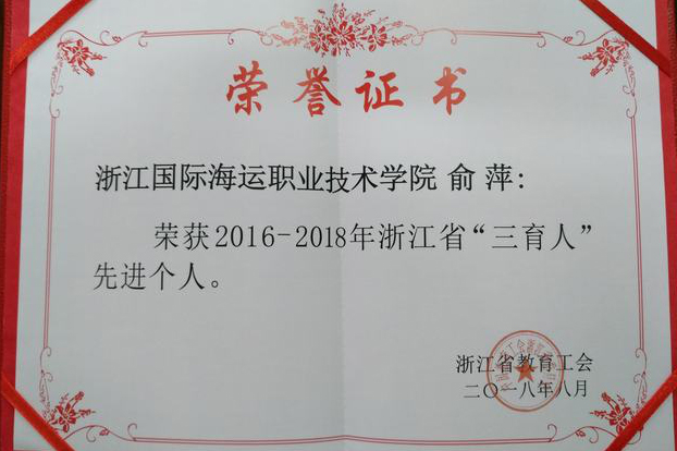 经过学校各二级工会推荐,浙江省教育工会评选,我校俞萍老师被评为2016-2018年浙江省“三育人”先进个人。