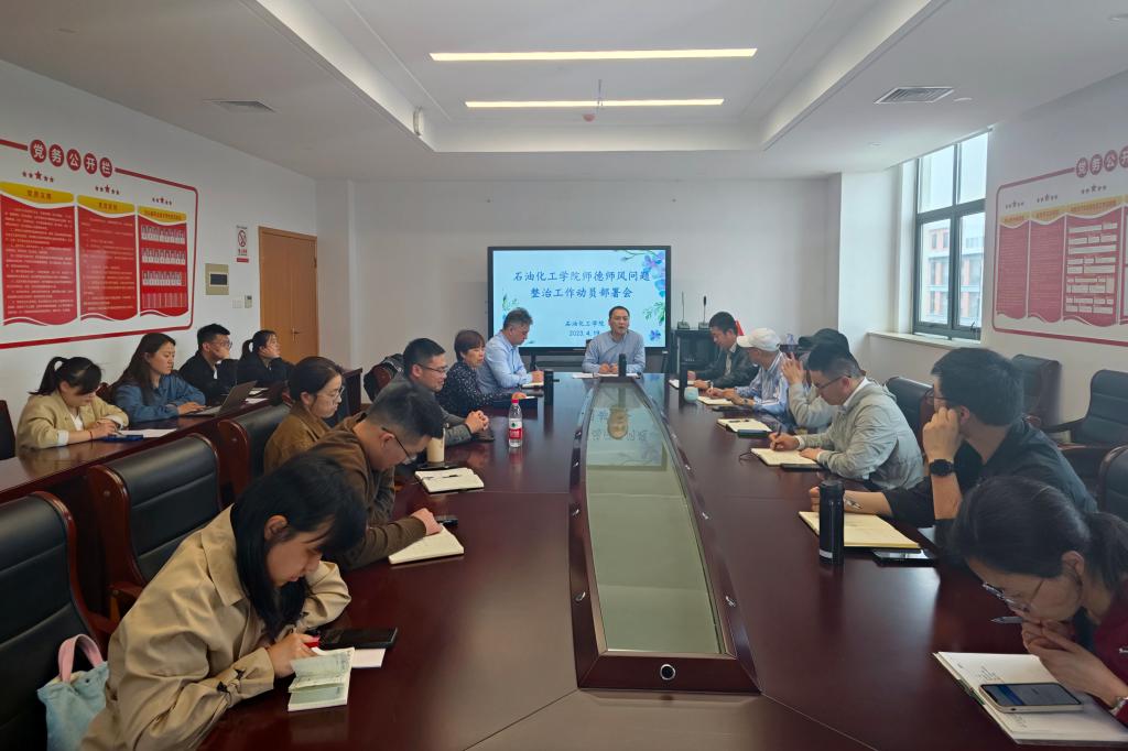 为进一步加强学院师德师风建设,引导广大教职工坚守师德、弘扬优良师风,4月19日,石油化工学院召开师德师风问题整治工作动员部署会。会议由党支部书记张海波主持,全体教职工参加。