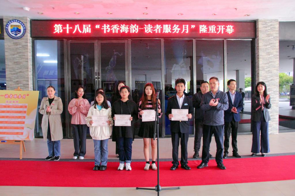 春暖花开季,正是读书时。4月19日下午,我校第十八届“书香海韵 读者服务月”读书节开幕式在图书馆一楼大厅举行。校党委委员、副校长曹志斌出席开幕式并致辞,图书馆副馆长周勤主持开幕式。学校图书馆、宣传部、团委、文化体育部、各二级学院负责人及部分师生读者近300人出席了开幕仪式。
