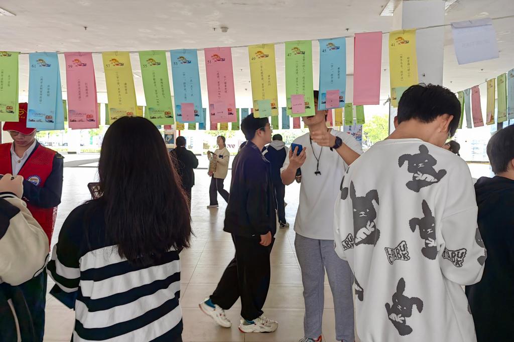 开幕式后,本届读者服务月开启了“学习党的二十大”猜谜活动和“唐诗宋词尽在我手”趣味活动。现场人头攒动,师生们或轻声品读,或悄悄讨论,或为同伴加油打气,其乐融融。