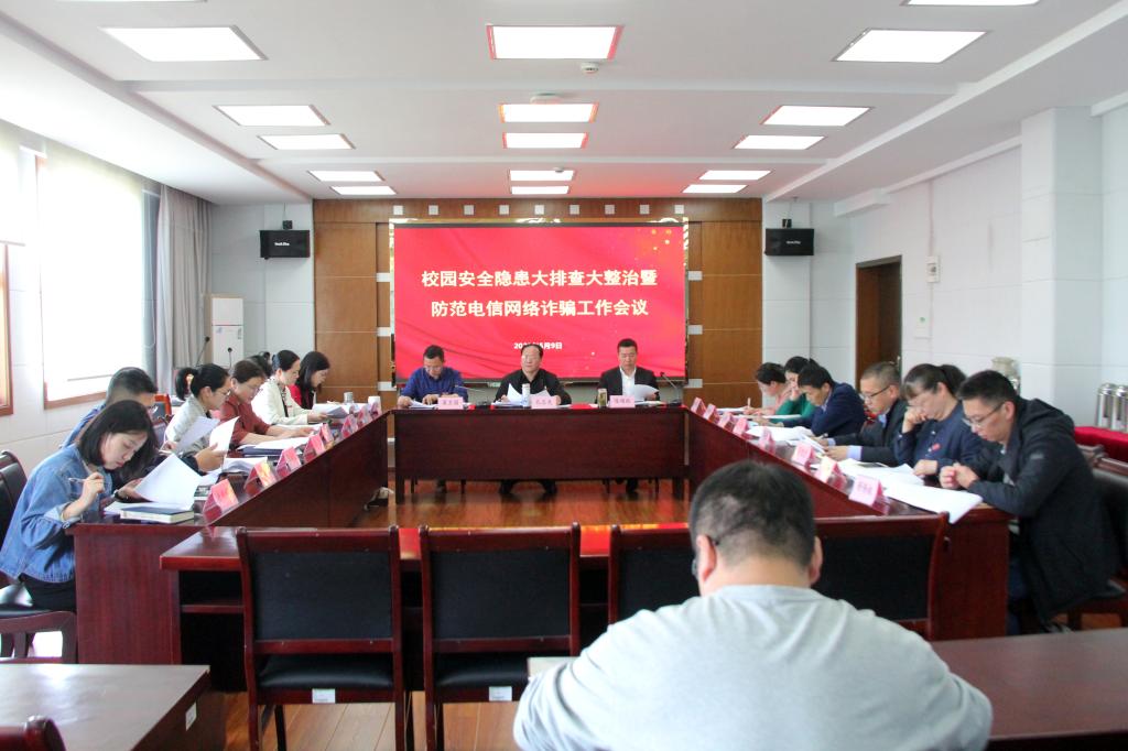 为认真贯彻落实省、市有关开展校园安全隐患大排查大整治和预防电信网络诈骗宣传教育工作要求,切实抓好隐患排查与整治工作,防范和减少电信网络诈骗案件的发生,全力维护安全稳定和谐的校园环境,5月9日下午,学校在行政楼401会议室召开校园安全隐患大排查大整治暨防范电信网络诈骗工作会议。校党委副书记孔志光,各责任牵头部门(单位)主要负责人、二级学院书记参加了会议,会议由保卫工作部部长陈增跃主持。