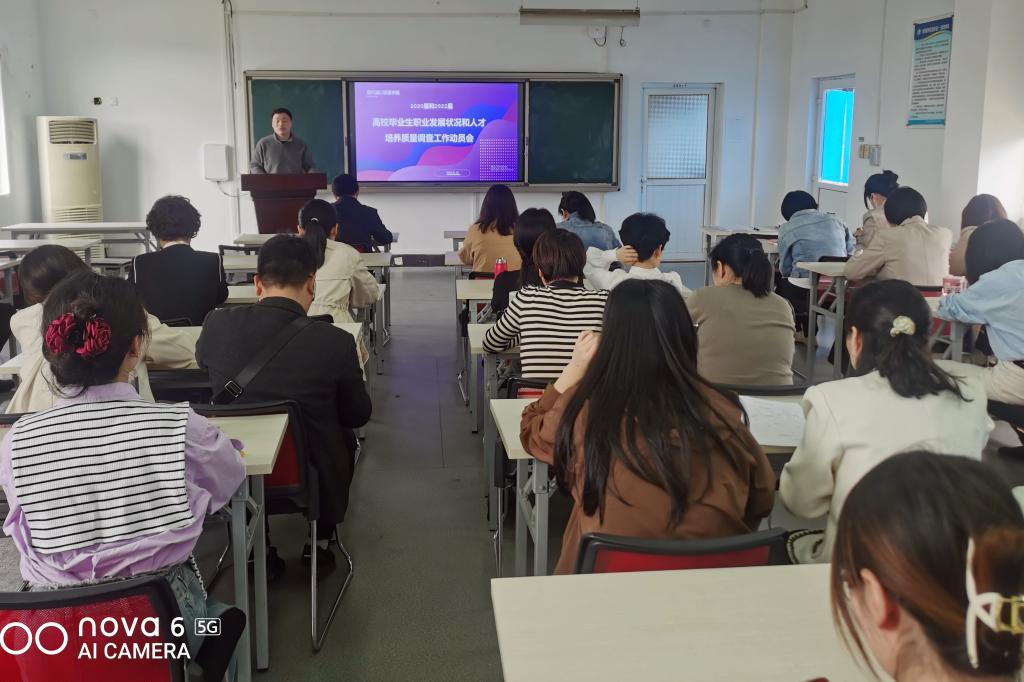 为切实做好2022年毕业生职业发展状况及人才培养质量跟踪调查工作,5月10日下午,现代港口贸易学院在海德楼422教室召开2020届、2022届毕业生职业发展状况及人才培养质量调查工作动员会议,学院党政班子成员、各专业团队教师、辅导员、2020届和2022届毕业生班主任参加了会议。