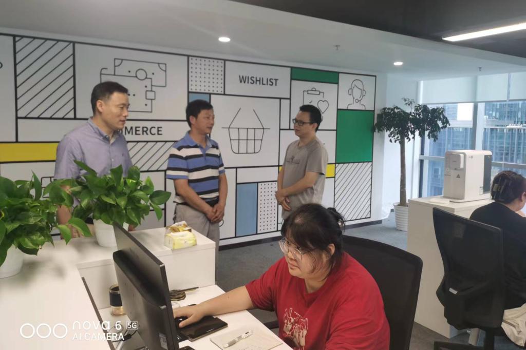 6月27日,现代港口贸易学院院长王贵斌、党总支书记吴平波、综合办主任邵佩华一行,专程前往舟山市跨境电商产业园区,看望在舟山市新蓝电子商务有限公司和舟山扶云跨境电子商务有限公司学习的15名学生,了解学生的学习和工作情况。