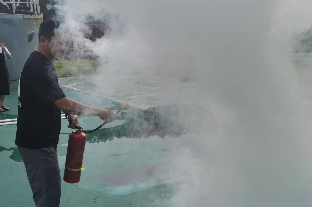 航海工程学院的孙波老师以《实训室消防安全培训》为题详细讲解了实验室灭火器的原理、特点、构造等,并现场演示了干粉、泡沫、二氧化碳灭火器的使用操作方法。参训人员认真学习,并有序使用灭火器进行了现场实操灭火演练。