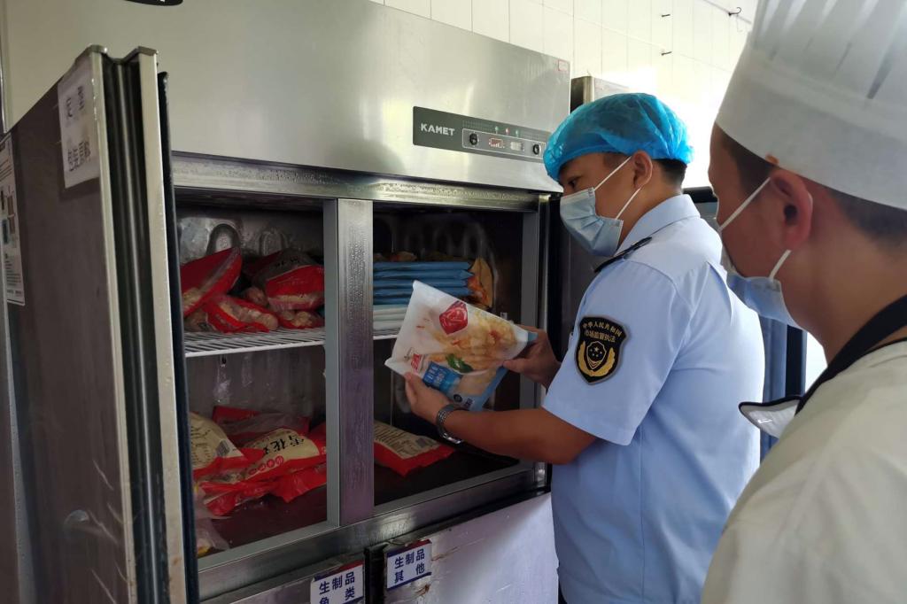 检查组分3个小组,分别实地查看了学校食堂的就餐区、烹饪间、切配间、消毒间、主副食仓库等场所,重点检查了清洁卫生、食品留样、生熟食分开储存、灭蝇灯设置、食材保质日期等情况,并就相关准备工作和操作细节进行了询问。