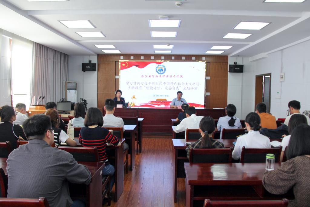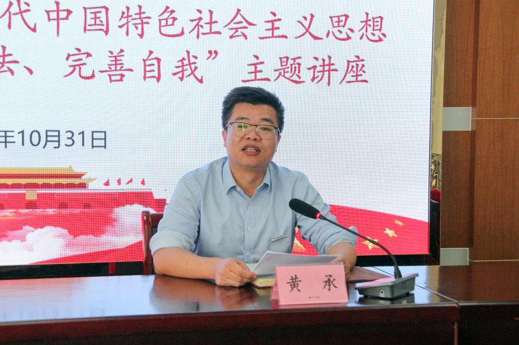 为推动学习贯彻习近平新时代中国特色社会主义思想主题教育走深走实,进一步引导青年干部坚定理想信念、提升党性觉悟、涵养道德操守、严守纪法规矩,10月31日,经学校主题教育统一部署,在行政楼401会议室举办了青年干部“明德守法、完善自我”主题讲座,20余名青年干部参加,校党委委员、组织部部长黄承主持讲座。
