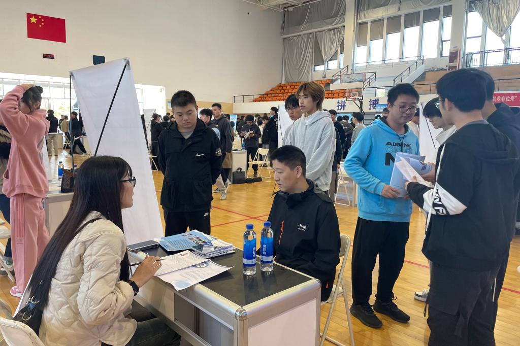11月18日下午,由舟山市人力资源和社会保障局和我校共同主办,海洋装备工程学院联合国际教育学院共同承办的2024届海洋装备类毕业生就业实习现场招聘会在体育馆举行。海洋装备工程学院领导与参会企业深入交流,了解企业需求,同时引导实习生们转变就业观念,树立“先就业后择业”的就业观,积极投递简历。招聘会上,各企业向实习生介绍了企业文化、招聘信息、晋升路线等就业关注问题,并向实习生发起了诚挚的邀请。实习生们在实习指导老师的指导下,手持精心准备的简历和自荐信,积极与招聘人员交流,主动了解用人单位的情况。现场气氛活跃,实习生们反响热烈。