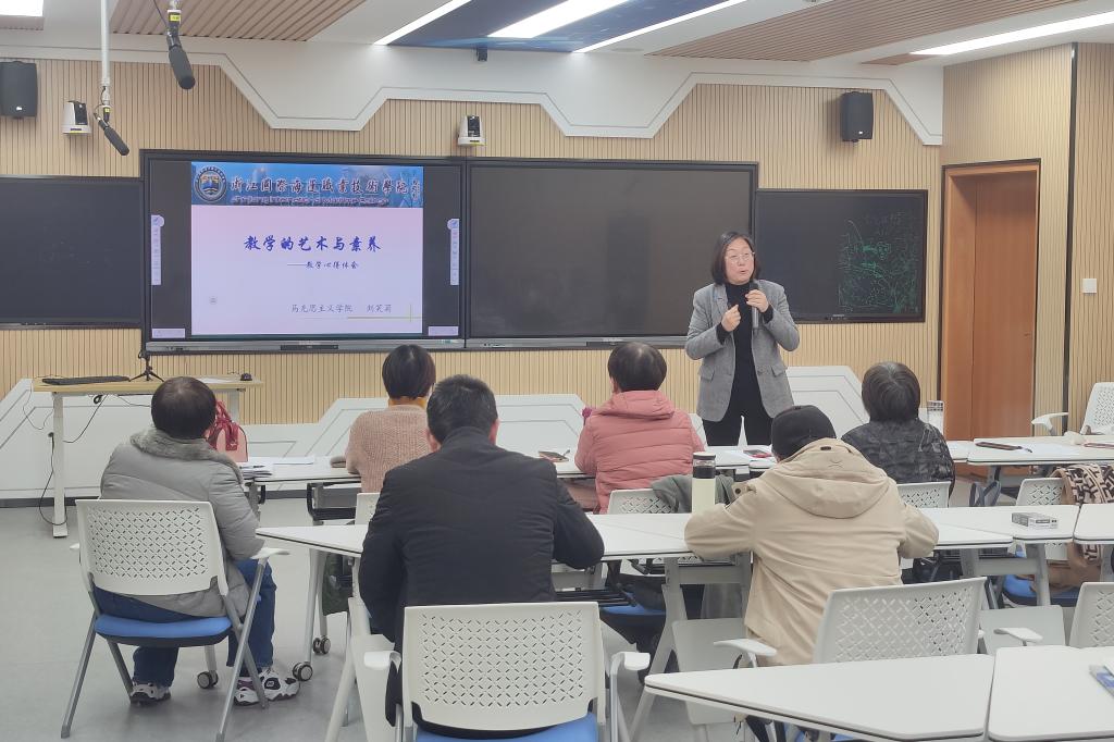 各位评委从说课水平、课程目标把握、教学模式及方法的改进等方面给予了建议和针对性的改进措施。刘笑菊教授从教学艺术的特征、教学中的理性表达与情感抒发、优化教学过程和教师的情感素养等四个方面分享了她多年以来的心得体会。