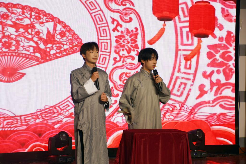 晚会在《大明风华》汉服文化展示中开场,身着各式汉服的演员们随着音乐的节奏,翩翩起舞,衣袂飘飘,展现了古代文化的独特魅力。《校园生活》相声以幽默的语言展现了校园中的搞笑场景;由徐龙杰同学独唱的《单车》唱出了父爱的深沉;徐煜嘉同学的拉丁舞表演,充满了力量和动感。