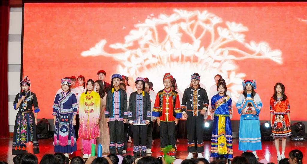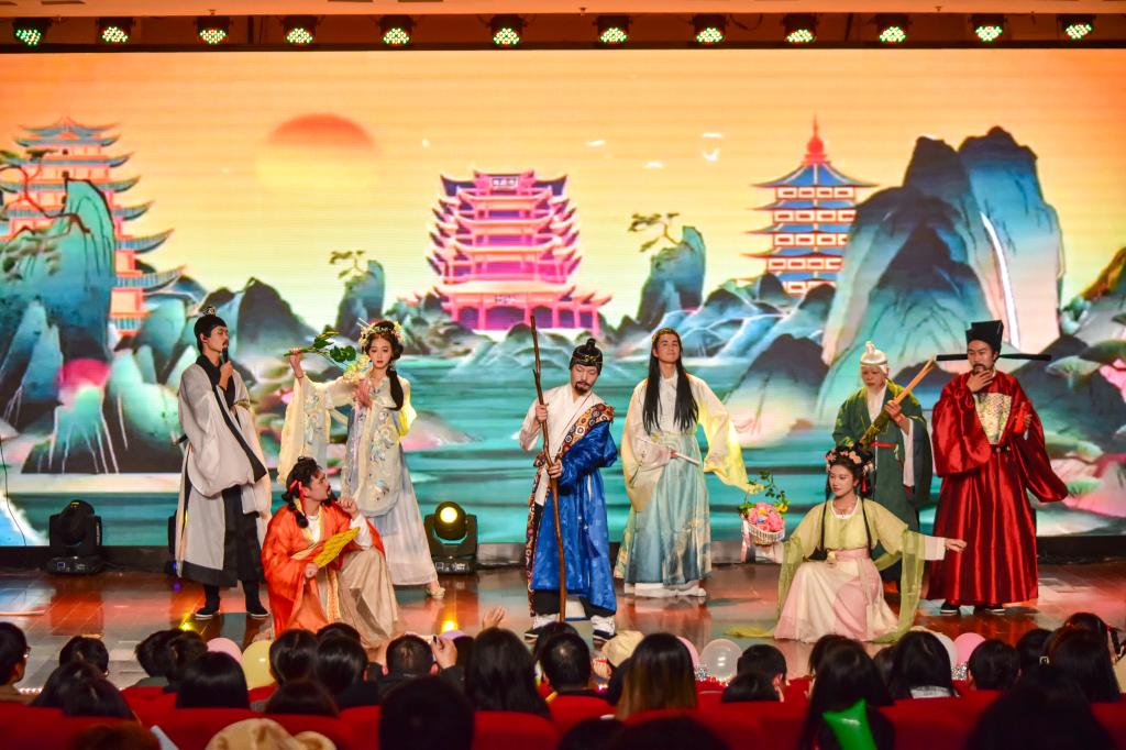 师生同台的《醉八仙》情景剧表演生动传神,服装道具精致,赢得了观众的惊叹。学院公益社和少数民族学生代表演绎的手语舞《我乘着风飞过来》将演出气氛顶到高潮。同学们用优美的手势,将歌曲中的情感和意义表达得淋漓尽致,观众们无不为之动容。