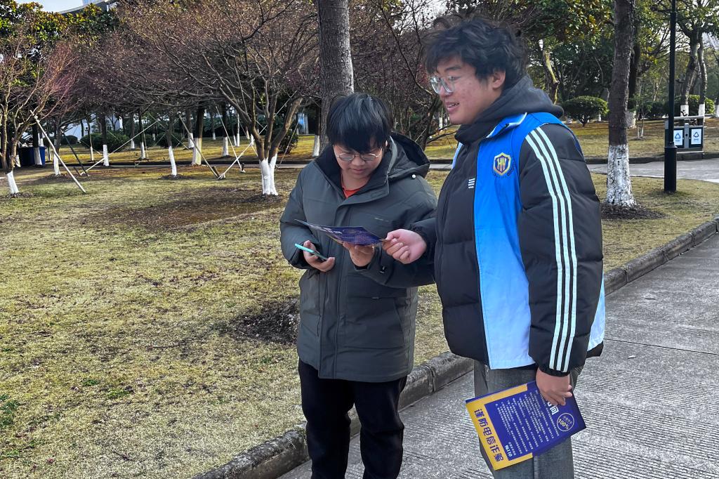 同学们边发传单边进行宣传,告诉大家“管好钱袋子、警惕小骗子”,“龙年行好运、不是撞大运”。生动形象,深入人心,取得良好效果。
