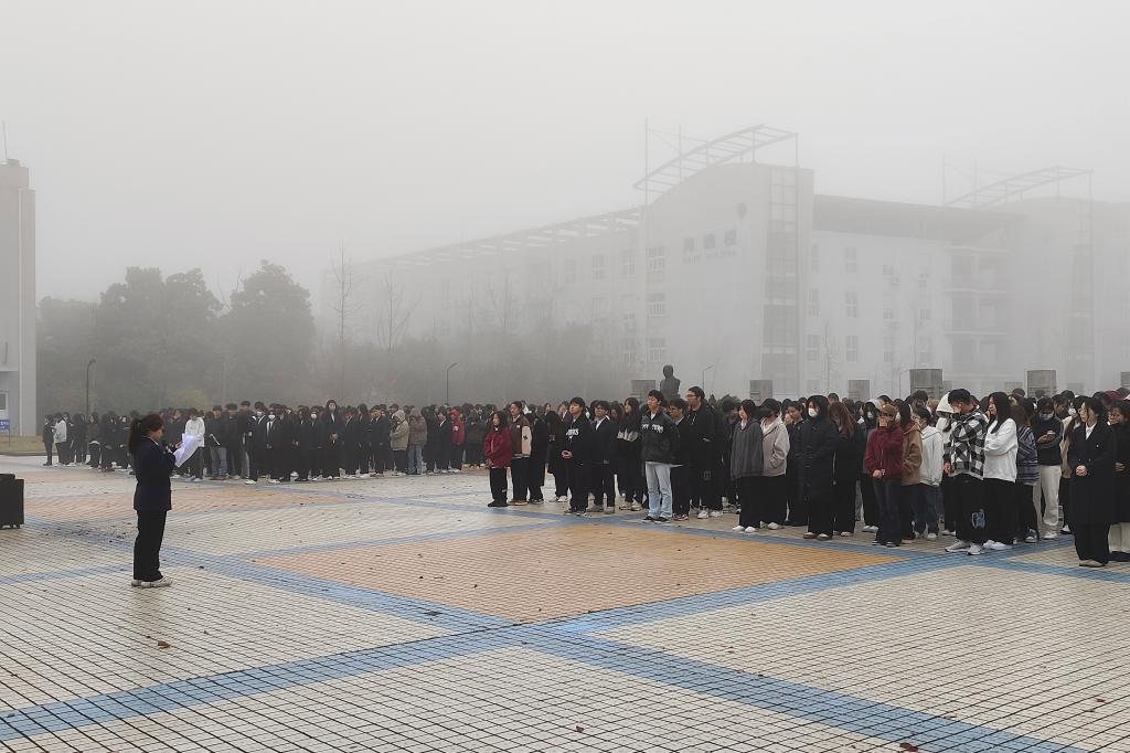 学院党总支副书记陈宋芳讲话,她强调了安全与法纪的重要性,并从交通、用电、防诈、守法、心理调适等方面进行了提醒。