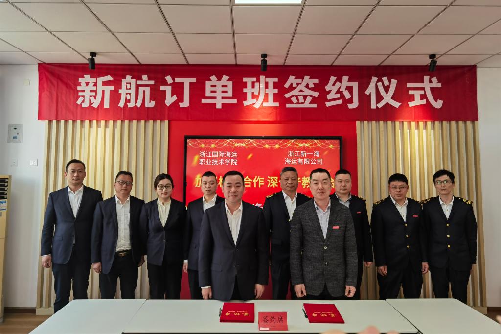 为共同培养符合海运业需求的高素养专业技能人才,推动职业教育与企业需求的无缝对接,4月9日上午,我校与浙江新一海海运有限公司签订“新航”订单班合作协议。浙江新一海海运有限公司党委书记、董事长张辉,党委委员、纪委书记、工会主席周勇,校党委委员陈永芳、航海工程学院院长汪益兵出席签约仪式。