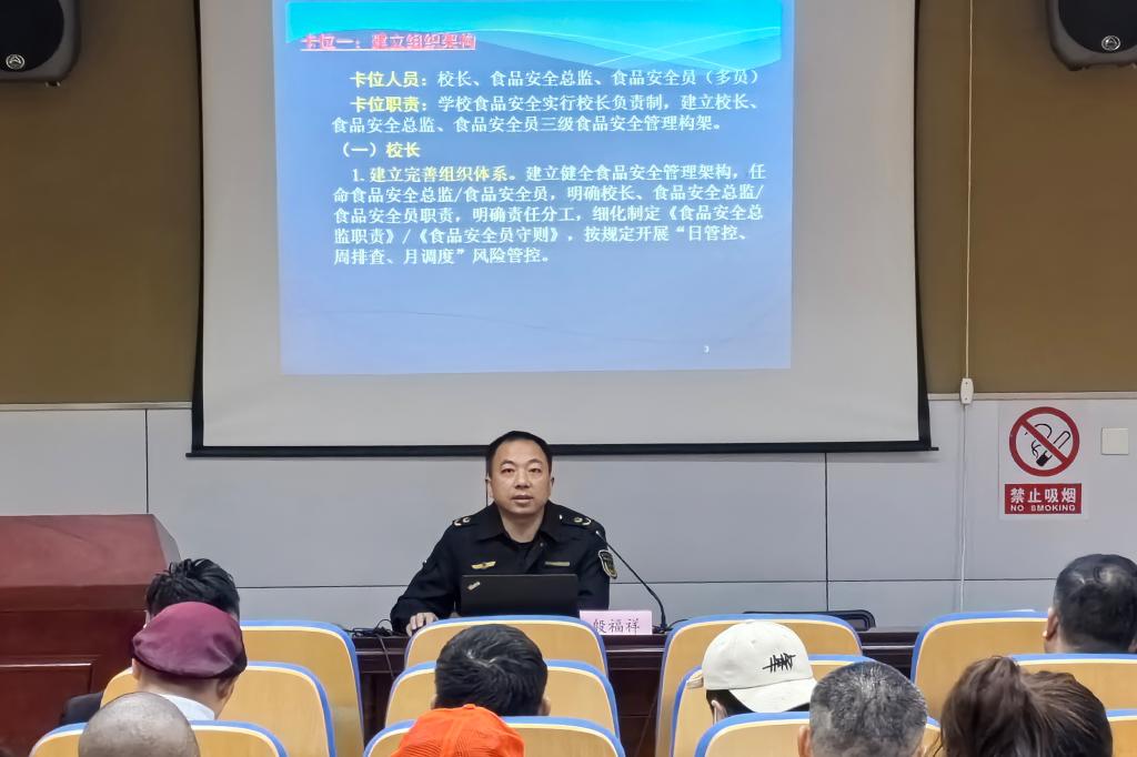 为进一步筑牢校园食品安全防线,加强食品安全监管,4月12日下午,后勤产业处特邀市市场监管局新城分局食安科科长殷福祥来校开展食品安全专题培训。培训会由后勤产业处副处长周静主持,食堂、商贸区等60余名从业人员参加。