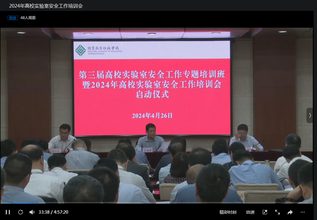 本次高校实验室安全工作培训会的召开,对提升我校实验室安全管理水平具有指导意义。我校将积极贯彻会议精神,充分理解实验室安全的重要性,严抓落实,务求实效,同时部署2024年实验室安全工作,切实维护师生生命财产安全,全面筑牢校园安全防线。(教务处)