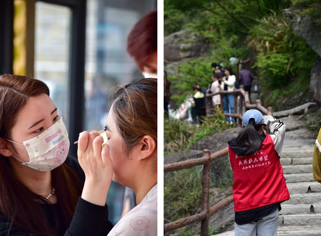 现代港口贸易学院的学生们化身为化妆和摄影达人,为游客们提供颇具特色的汉服簪花化妆和摄影服务。活动采取预约与现场参与相结合的方式,深受游客喜爱,纷纷拿出手机记录下这难忘的瞬间。汉服簪花装扮的游客成为了景区中一道亮丽的风景线,他们穿梭于各个景点,与古朴典雅的景区风格相得益彰。